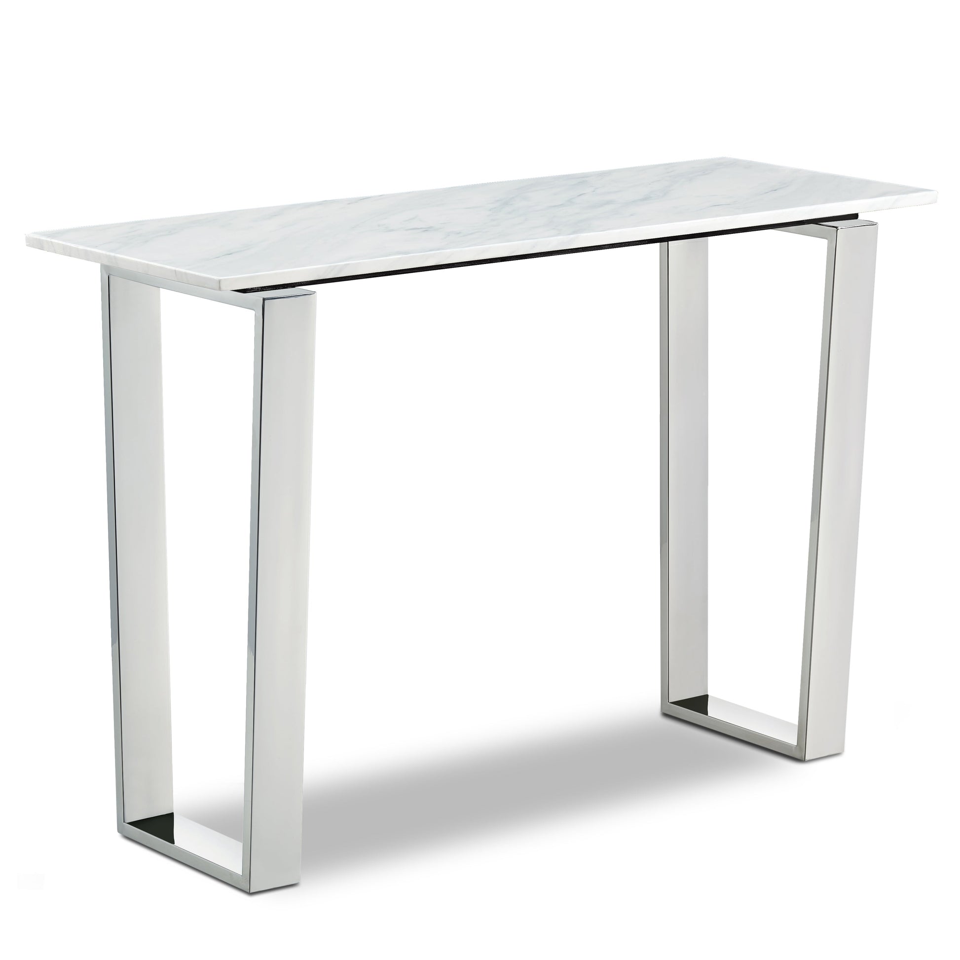 Pull your living room together with this stunning Carlton chrome console table by Meridian Furniture. This gorgeous contemporary chrome console table features a solid stone top that offsets its rich chrome stainless steel legs, providing the perfect contrast for a modern look. A shiny chrome finish ensures this table will be the highlight of your living room.