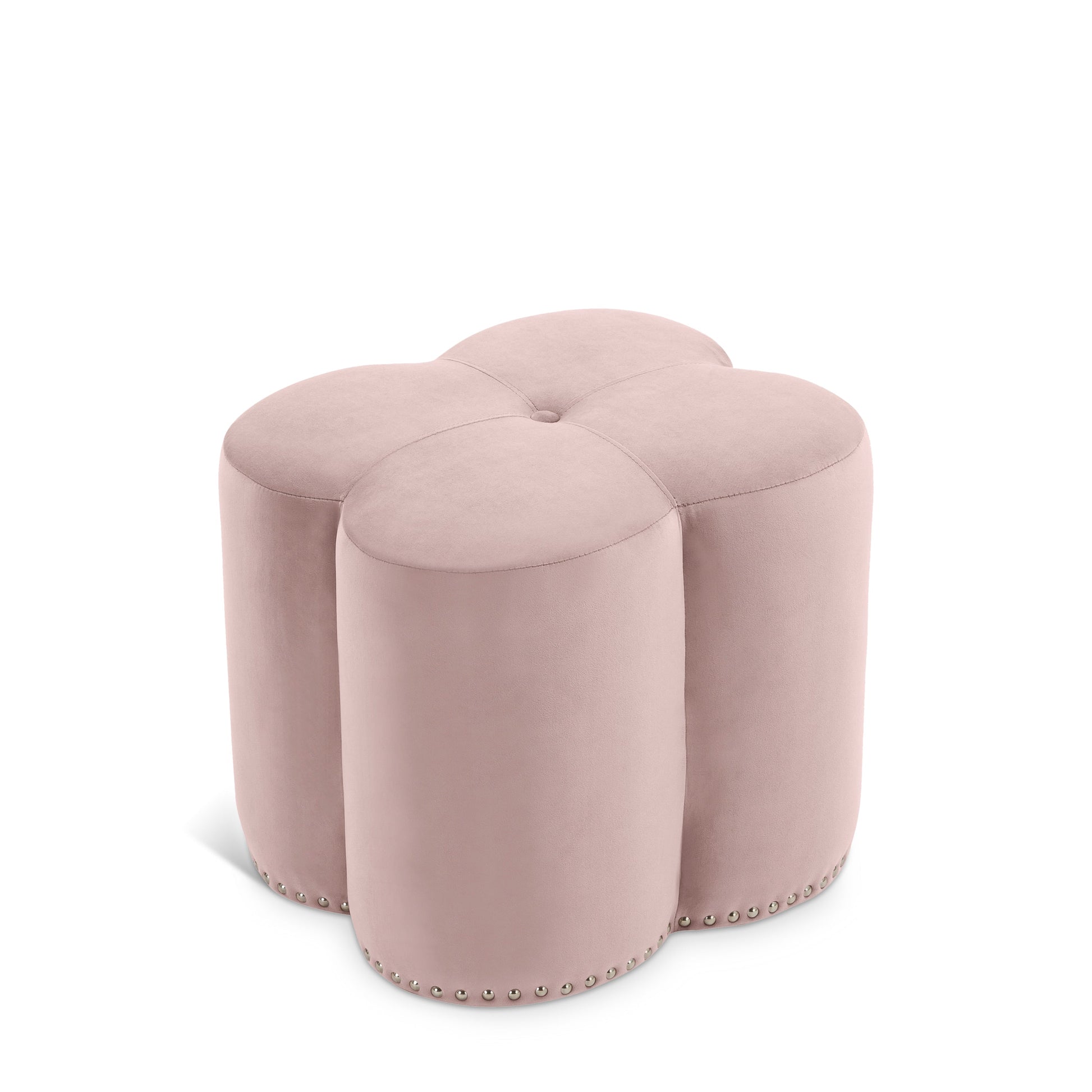 Bring a whimsical touch to your space with this fun Clover velvet ottoman. Beautifully soft cream velvet upholstery covers the exterior of this ottoman, lending it a plush and luxurious look and a velvety feel. The contemporary design is just right for modern decor themes, whether you use it in the living room or bedroom. Piping around the top of this fabric ottoman helps reinforce the design for a look that turns heads.