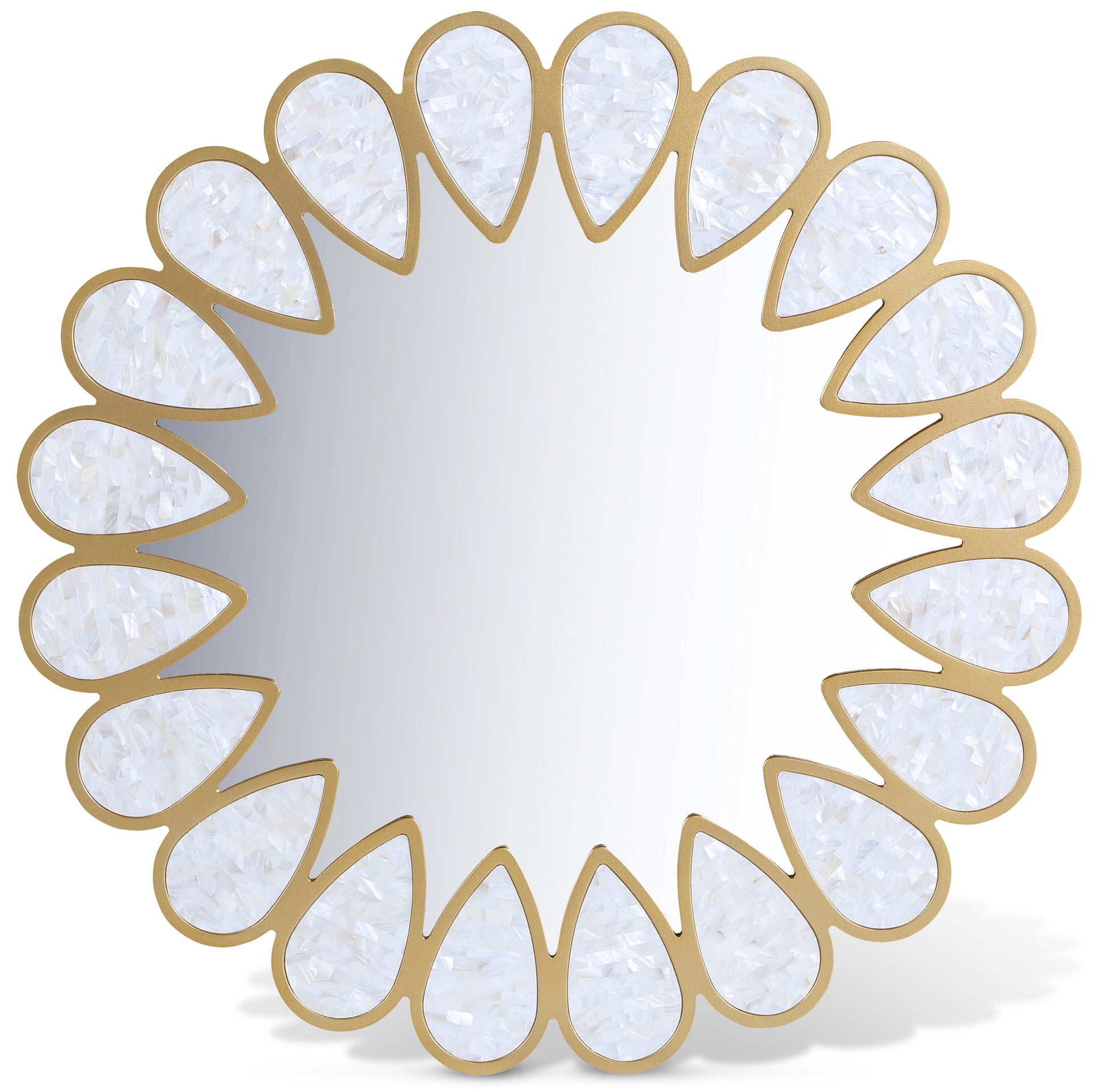Create an instant focal point on your wall when you hang this Shell mirror in your room. A lovely addition to your foyer, entryway, or the space above a headboard or fireplace, this oversized mirror commands instant attention with its shell accents inside its gold frame. Contemporary to the core, this mirror measures a full 32 by 32 inches, making it a beefy accent that is bound to garner loads of visual attention.