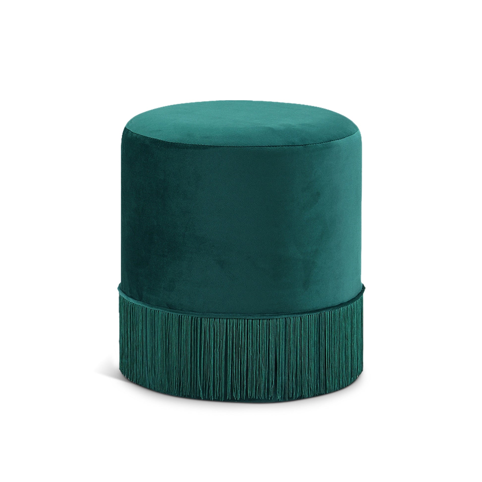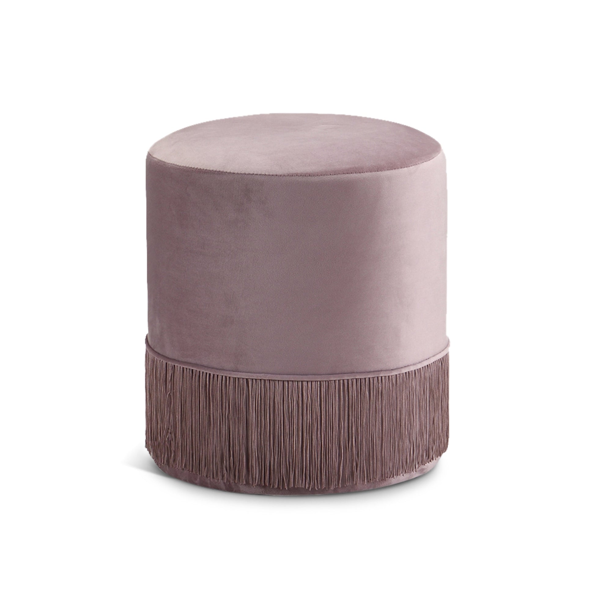 Bring a touch of romance to your space with this frilly Teddy Grey Velvet Ottoman/Stool. A fringed border of tassels surrounds the bottom perimeter of the stool, giving it a somewhat Bollywood-inspired vibe. The stool itself is upholstered in velvet for a posh feel and sumptuous look wherever you choose to use it. Put it in the living room as a fun and exciting accent and prop for your feet, or use it in the bedroom for a bit of boudoir inspiration.