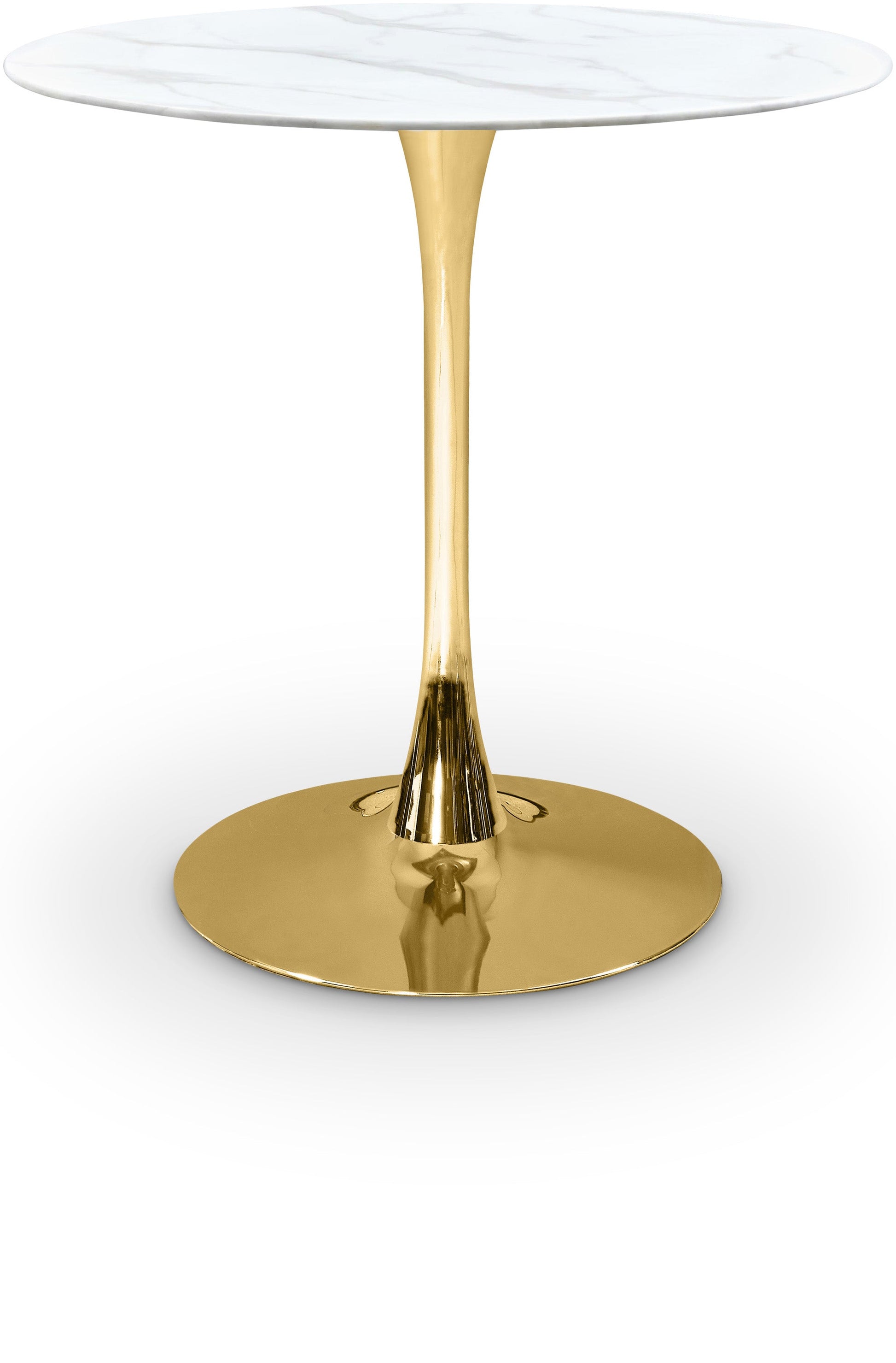 Add the Tulip 36" counter height table to your kitchen, den or office to enjoy its petite size and elegant lines. The tabletop is made of 10MM thick glass with a glamorous marble veneer. A shiny gold pedestal base adds to the appeal of this gorgeous piece, and lets it fit into smaller spaces comfortably. Choose from a wide array of available matching chair styles to complete your contemporary style decor.