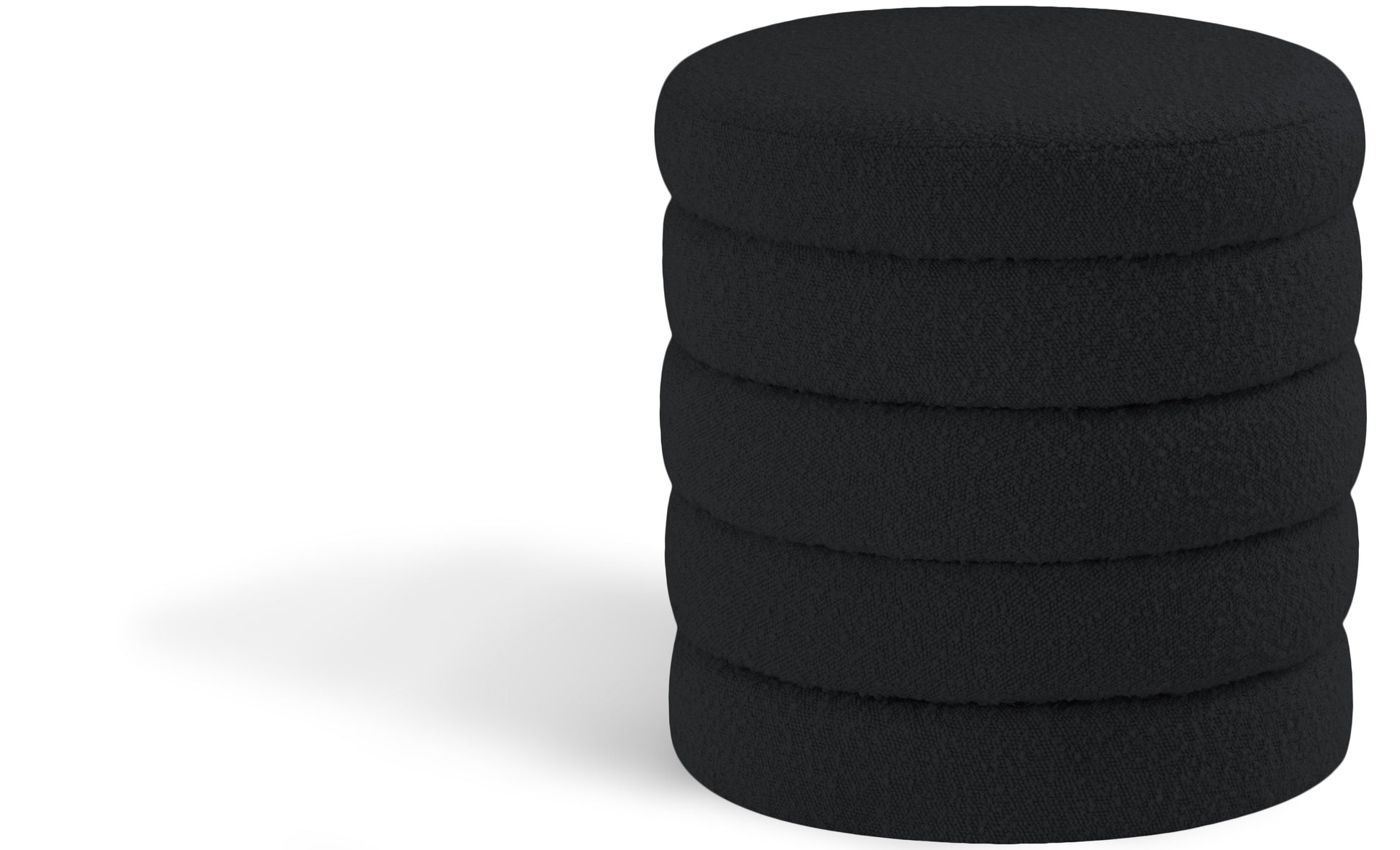Liven up your living space with this Aphia black boucle fabric ottoman/stool from Meridian Furniture. Featuring rich black boucle fabric upholstery, this ottoman offers softness to the touch and style to the eye. Deep channel tufting gives the appearance of multiple layers stacked together, making it a contemporary piece perfect for any modern home. Pair this ottoman with a matching black sofa, or use it as a stool to provide extra seating when you have visitors.