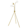 A trio of milky white globes sprout from the center of a charming mid-century modern three-light floor lamp. Delivering a warm, diffused glow in your living area or bedroom, the eye-catching lamp features a bold tripod base with a round accent from which three bent arms rise to host its multi-directional lighting. A chic gold finish adds warmth to the design, perfect for an inviting sitting area that welcomes friends and family. Its 9W LED bulbs are energy efficient, offering bright illumination with a fraction of the power consumed by traditional incandescent lights. Finally, a three-way rotary switch offers versatility with more precise control of lighting levels to set the perfect mood for every occasion.Options and Dimensions